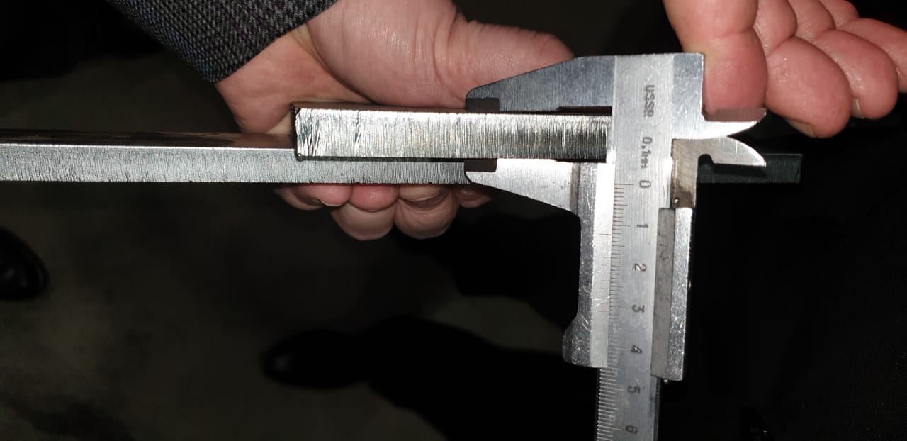 Диагностика не выявила сколько-нибудь серьезных проблем в системах станка.Изображение замера толщины штанге-циркулем отрезанного лазером листа 12мм